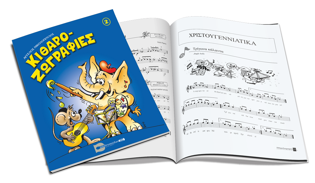 Το δεύτερο βιβλίο των «Κιθαρο-ζωγραφιών» έρχεται έπειτα από αρκετά χρόνια να καλύψει ένα κενό που άφηνε το πρώτο. Μια ομαλή μετάβαση σε πιο προχωρημένες τεχνικές του οργάνου μέσα από γνώριμες στα παιδιά μελωδίες.